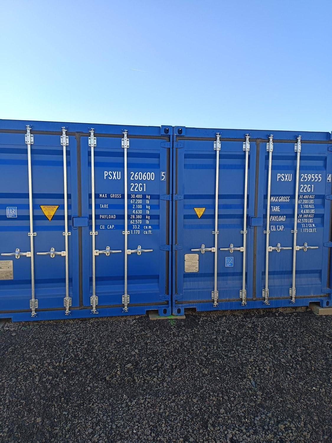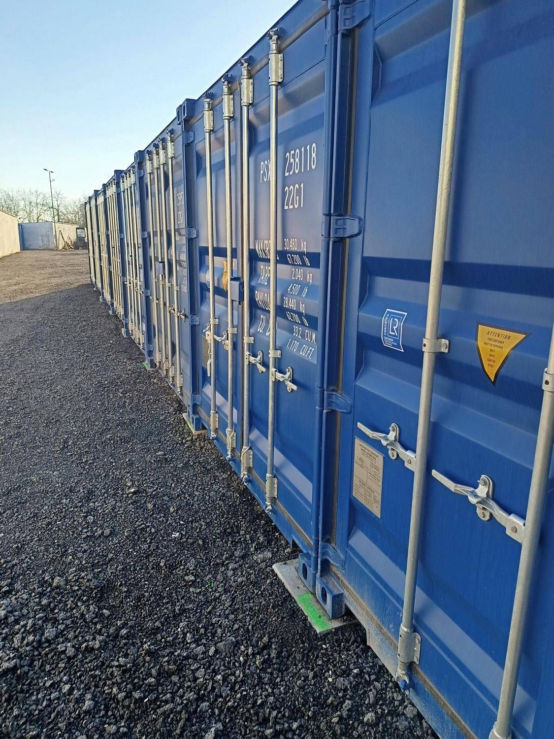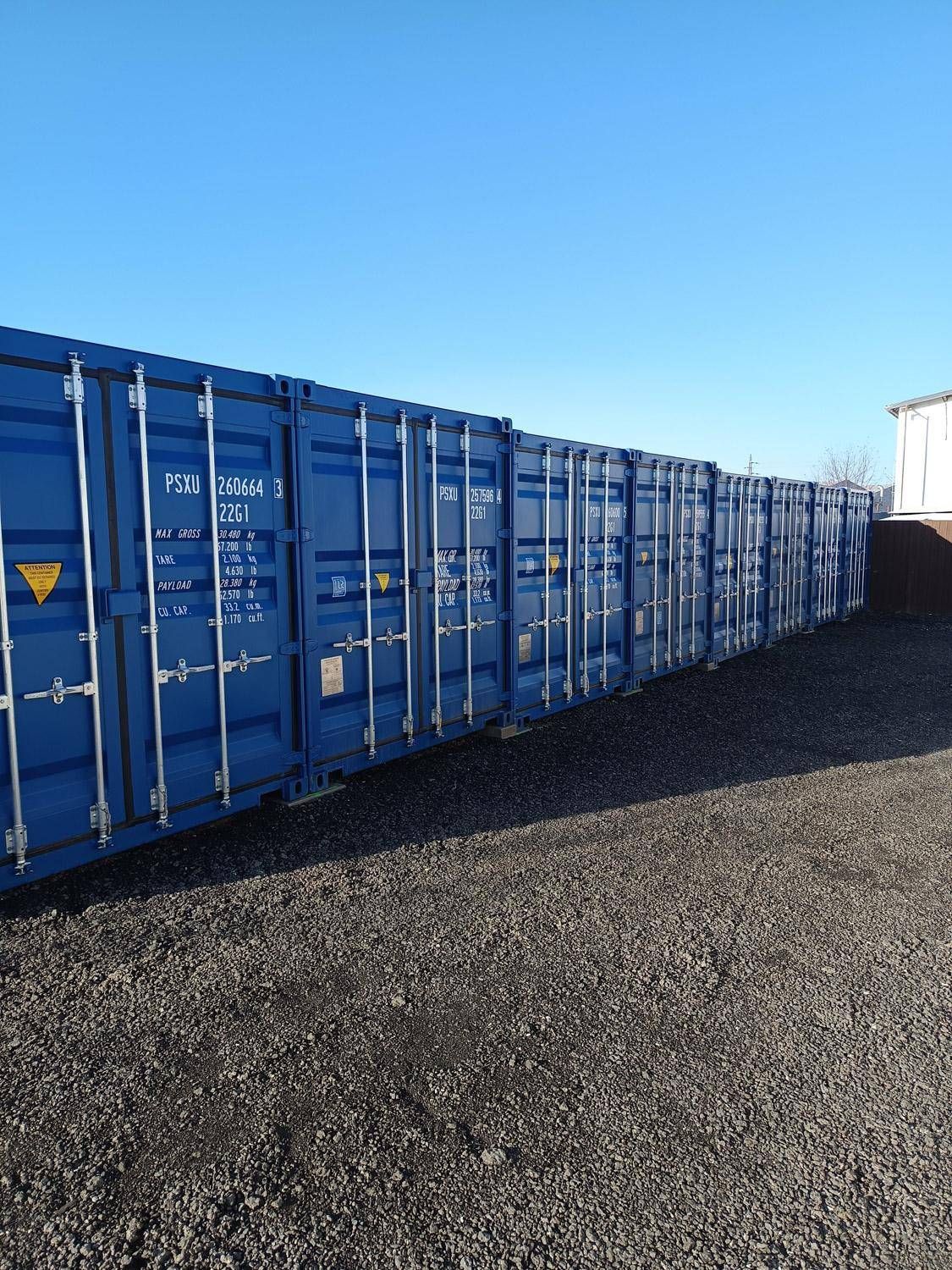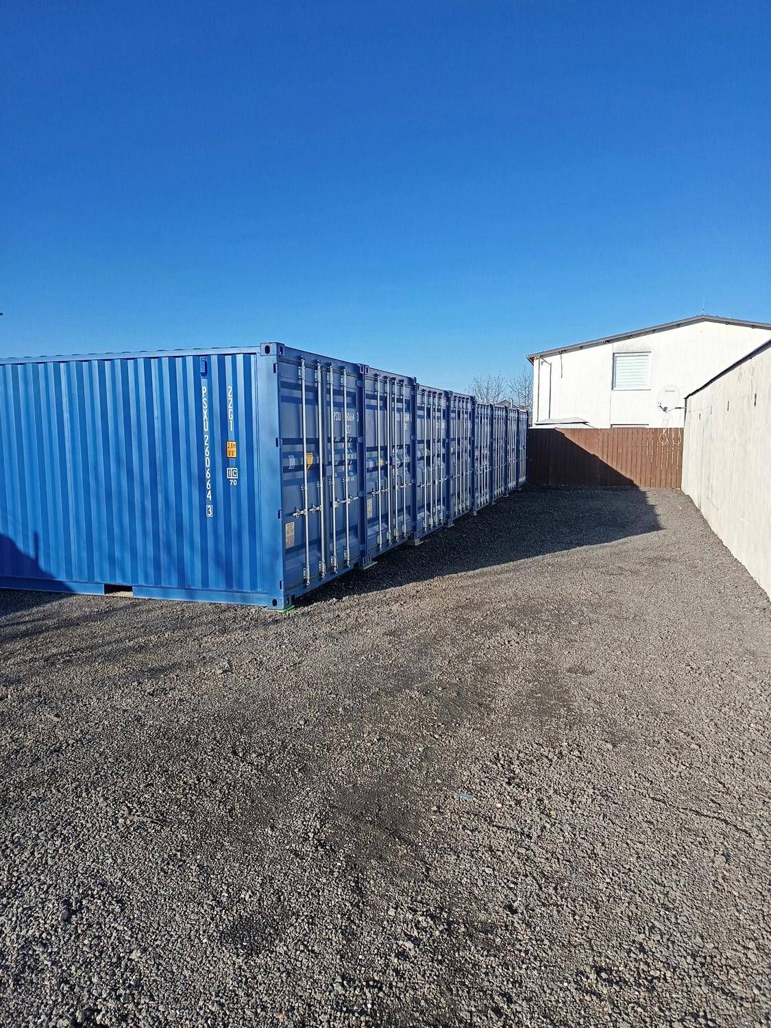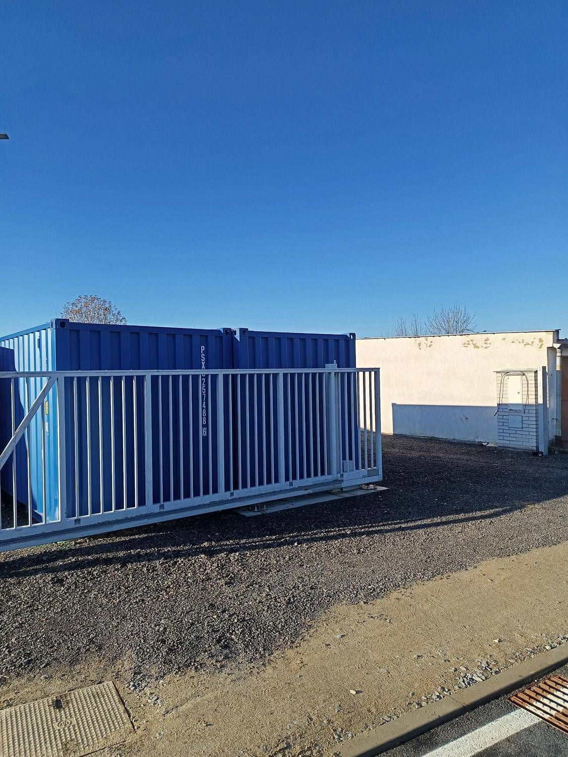 Skladovací kontejnery v areálu jsou sestaveny tak, aby tvořily uzavřený oplocený prostor.