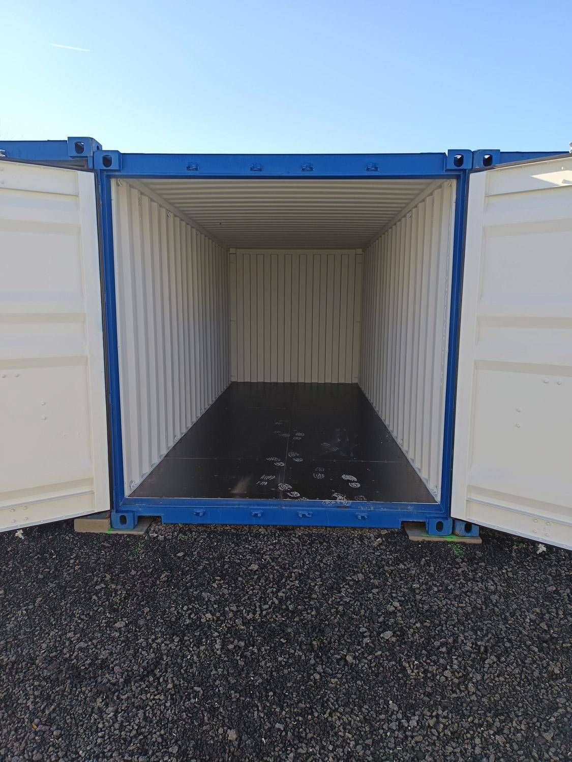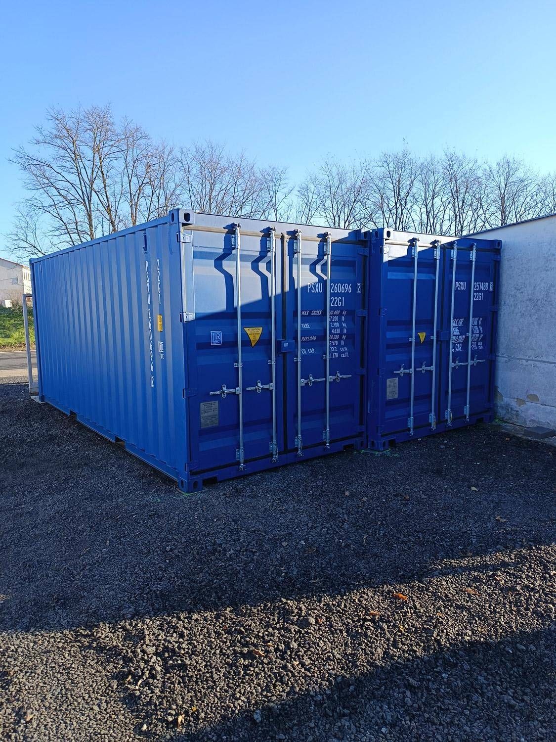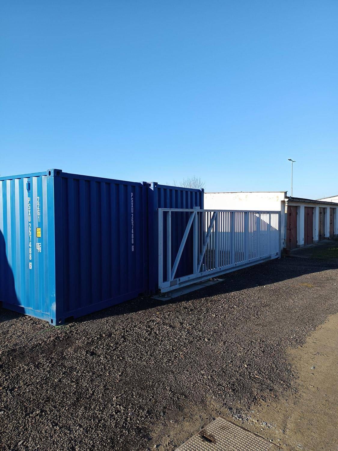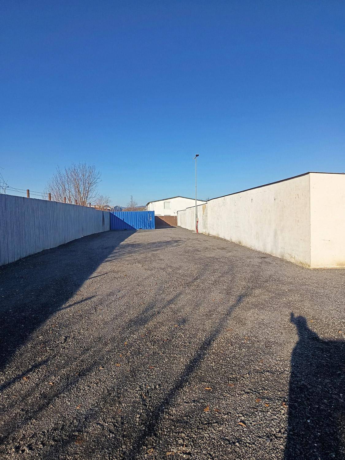 Skladovací kontejnery v areálu jsou sestaveny tak, aby tvořily uzavřený oplocený prostor.